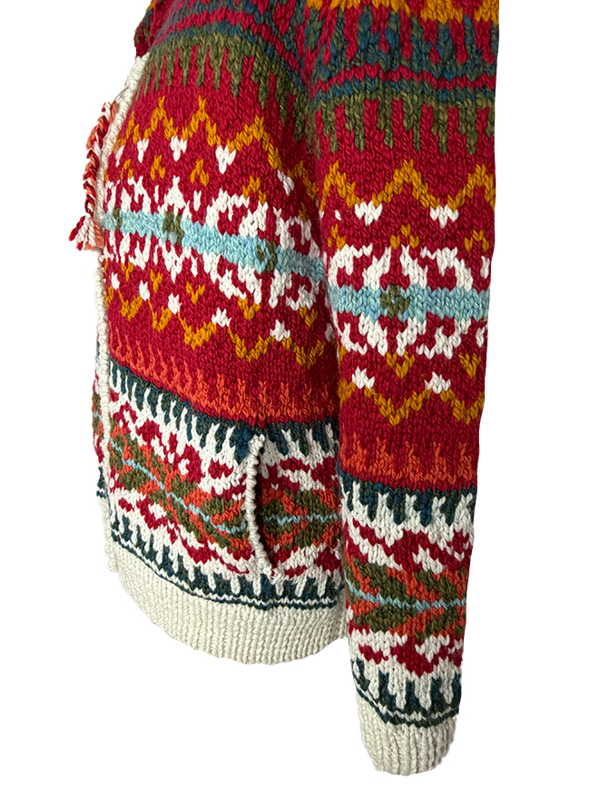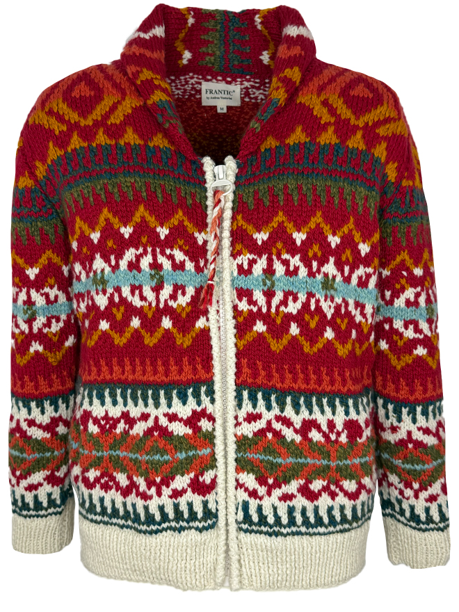 Mit dem Cardigan „Christmas“ von FRANTIC zieht festliche Stimmung in die Garderobe ein. Die exklusive Strickjacke wird vollständig von Hand in den Anden gefertigt – jedes Stück ein Unikat, das die Wärme und Leidenschaft traditioneller Handwerkskunst spürbar macht.