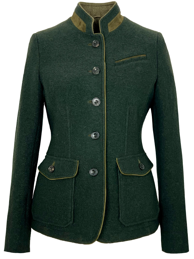 Die Wolljacke Aschach von Habsburg überzeugt durch hochwertige Schurwoll-Qualität und eine taillierte Passform. Klassische Elemente wie Stehkragen, Knopfleiste und geknöpfte Taschen prägen den Look, während Veloursleder-Einsätze, Paspelierungen und Ellbogen-Patches das Modell charaktervoll abrunden. Ein Stück mit Wiedererkennungswert – für Liebhaberinnen traditioneller, authentischer Mode.