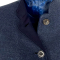 Der Habsburg Blazer Friedburg vereint zeitlose Eleganz mit feinster Stoffkultur. Gefertigt aus italienischem Fischgrat aus Schurwolle und Cashmere, zeigt er jene Balance aus Struktur und Weichheit, die echte Manufakturqualität auszeichnet. Der schmale Schnitt mit Stehkragen betont eine ruhige Silhouette, während die Lederpaspel entlang der Vorderkante dezente Präzision setzt. Büffelhornknöpfe, Vollfutter und handwerklich ausgeführte Pattentaschen vollenden das Gesamtbild – ein Kleidungsstück, das klassische Werte mit moderner Klarheit verbindet.