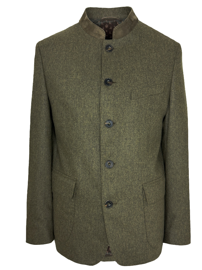 Die Jacke Wendelin ist eine kernige Interpretation klassischer Trachten- und Herrenmode. Sie verbindet italienische Stoffkultur mit österreichischer Handwerkspräzision und überzeugt durch ihre markante Silhouette. Der hochwertige Flanellstretch aus Italien – gefertigt aus reiner Schurwolle mit leichtem Elastananteil – bietet Formstabilität, angenehme Wärme und eine griffige Struktur. Feine Lammvelours-Akzente an Kragen und Ellbogen zitieren die Wurzeln aus Jagd- und Reitkultur, während handgenähte Knopflöcher und echte Büffelhornknöpfe die Liebe zum Detail sichtbar machen. Wendelin ist ein klassischer Habsburg-Janker – geschaffen für Herren, die Wert auf Stil, Handwerk und Understatement legen.