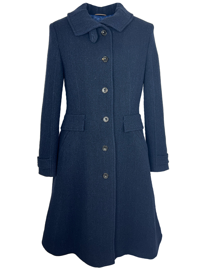 Der Damenmantel Bodensee steht für zeitlose Eleganz und meisterhafte Handwerkskunst. Gefertigt aus hochwertigem Schurwollgewebe in klassischer Fischgratstruktur überzeugt er durch seine edle Optik und angenehme Wärme. Der hohe Stehkragen mit knöpfbarem Riegel schützt stilvoll vor Wind und Wetter, während die taillierte Silhouette eine feminine Kontur betont. Liebevolle Details wie verstellbare Ärmelriegel, ein verdeckter Rückenschlitz in Kellerfalte und dekorative Patten im Reiterstil unterstreichen die besondere Verarbeitung. Das changierende, gesteppte Innenfutter mit Wappenmotiv rundet den luxuriösen Look ab – ein Mantel für souveräne Auftritte in Stadt und Natur.
