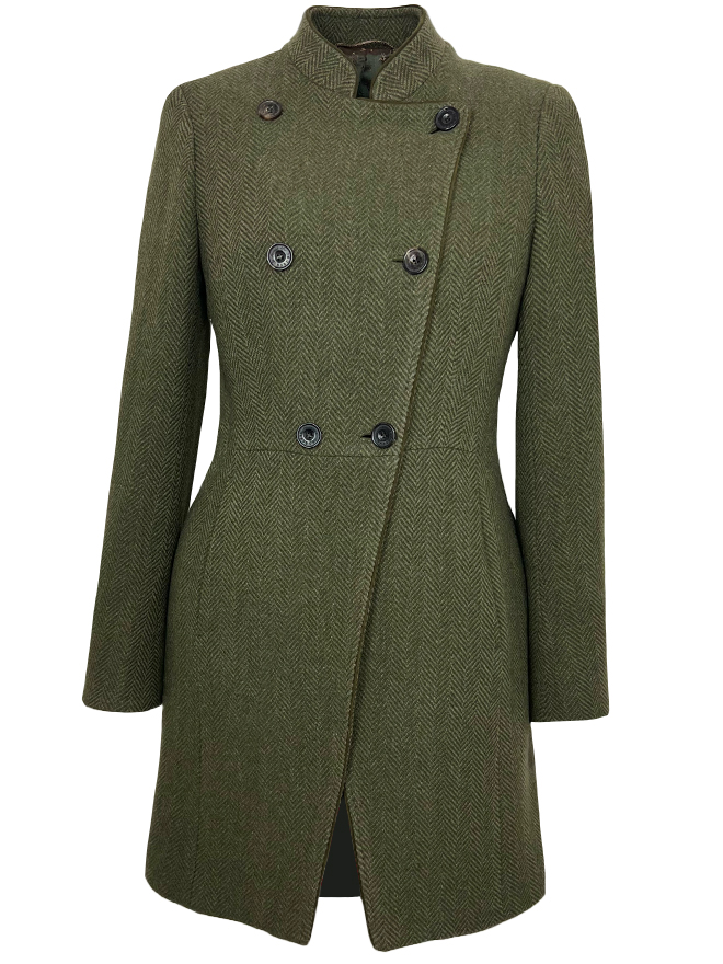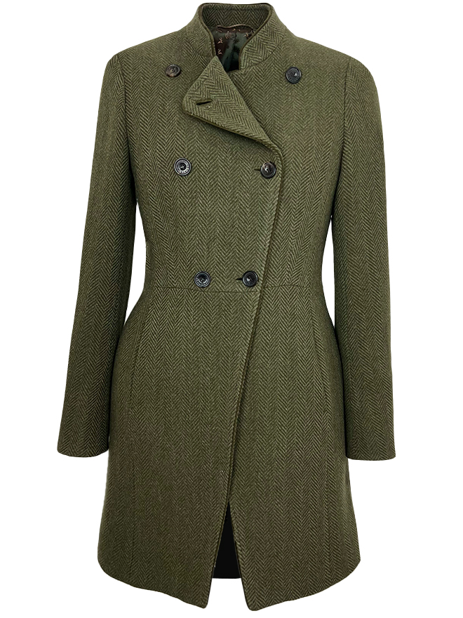 Mantel Meiselberg in Grün in Fischgrat, Vorderansicht Damen