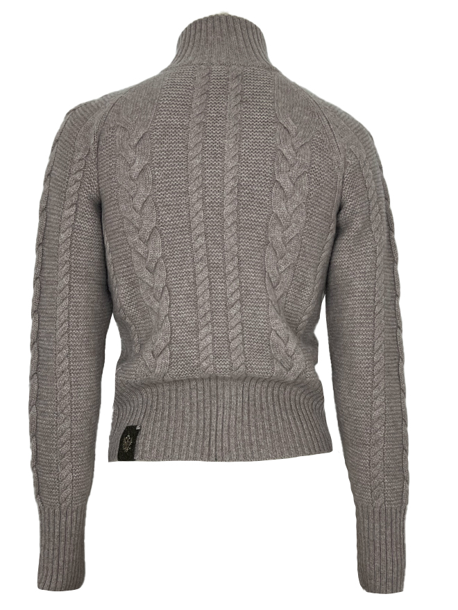 • Details: Feines Zopfmuster, Perlfang-Struktur, hoher Kragen, Abschlüsse in Rippstrick