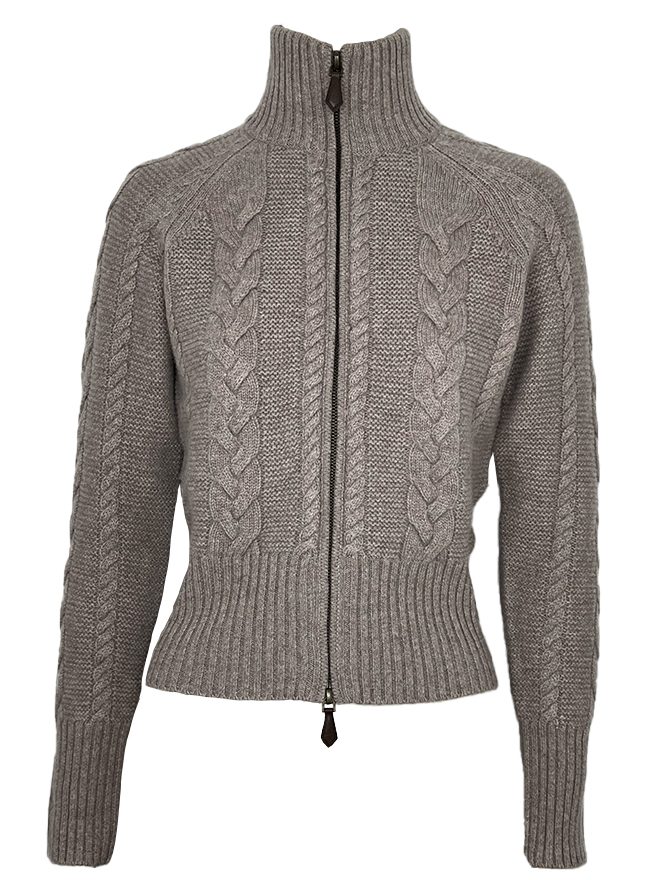 Die Strickjacke Annabelle in Sand interpretiert traditionelles Handwerk modern und sportlich. Feines Zopfmuster kombiniert mit Perlfangmuster verleihen dem Modell eine edle Struktur und besondere Tiefe. Gefertigt aus 100 % reinem Cashmere, bietet die Jacke unvergleichliche Weichheit und höchsten Tragekomfort. Der hochgeschlossene Kragen, Abschlüsse in Rippstrick sowie der Zwei-Wege-Reißverschluss mit Ledergriff unterstreichen den sportlichen Charakter. Ein Modell, dass Wertigkeit und Alltagstauglichkeit perfekt verbindet.