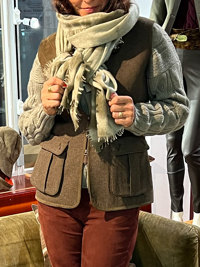 Die Weste Falkenstein vereint traditionelle Materialien mit einem modernen, sportlichen Auftritt. Gefertigt aus feinem Erzherzog-Johann-Loden, der seit Generationen in Österreich gewebt wird, überzeugt sie durch Widerstandskraft, angenehmen Griff und hohe Alltagstauglichkeit. Der schmale Schnitt betont die feminine Linie, während Lederbesätze und ein abgestepptes Futter der Weste Struktur und Charakter verleihen. Zwei Taschen mit Hornknöpfen und der dezente Reißverschluss runden das durchdachte Design ab – eine Weste für aktive Tage und vielseitige Kombinationen.